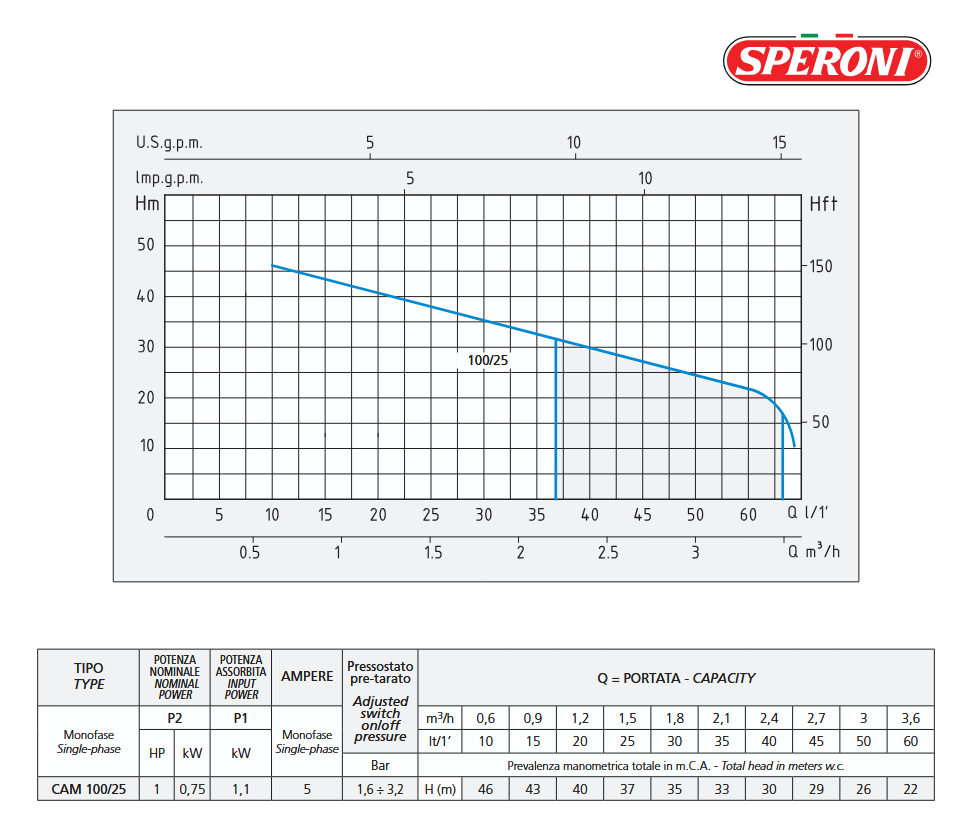 Surpresseur à vessie Press V CAM 100/60L HW 60 SPERONI