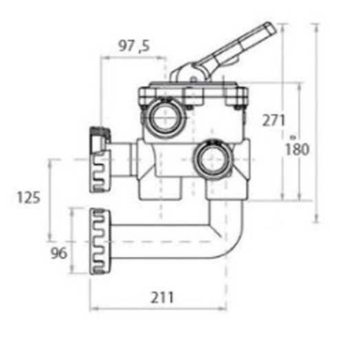 Vanne multivoies 09758 Side 1"1/2 Classic noire avec montage entraxe 125 mm - 43009 pour les filtres à sable de la marque ASTRAL.