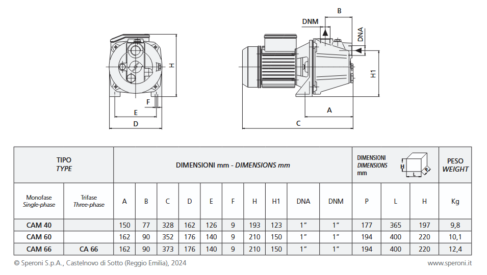 La pompe électrique auto-amorçantes CAM 40 SPERONI offre d'excellentes performances hydrauliques et une capacité de pression remarquable. Elle peut aspirer jusqu'à 8 mètres de profondeur. Convient pour le levage et la distribution d'eau dans les systèmes domestiques avec des petits et moyens réservoirs.