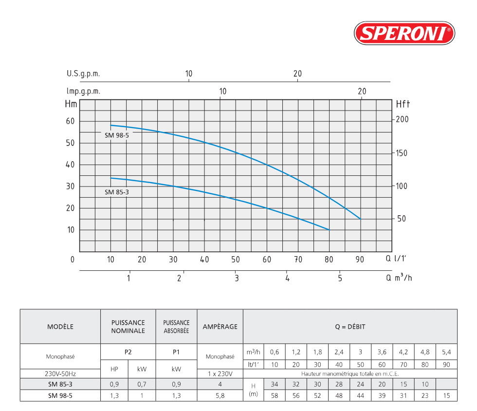 La pompe SM 95-5 monophasée SPERONI centrifuges auto-amorçantes à turbines multiples capables de développer une pression et une hauteur de refoulement élevées avec une consommation d'énergie relativement faible. Une pompe universelle à usage domestique et industriel, pour les systèmes haute pression et pour l'irrigation en agriculture et les installations sportives.